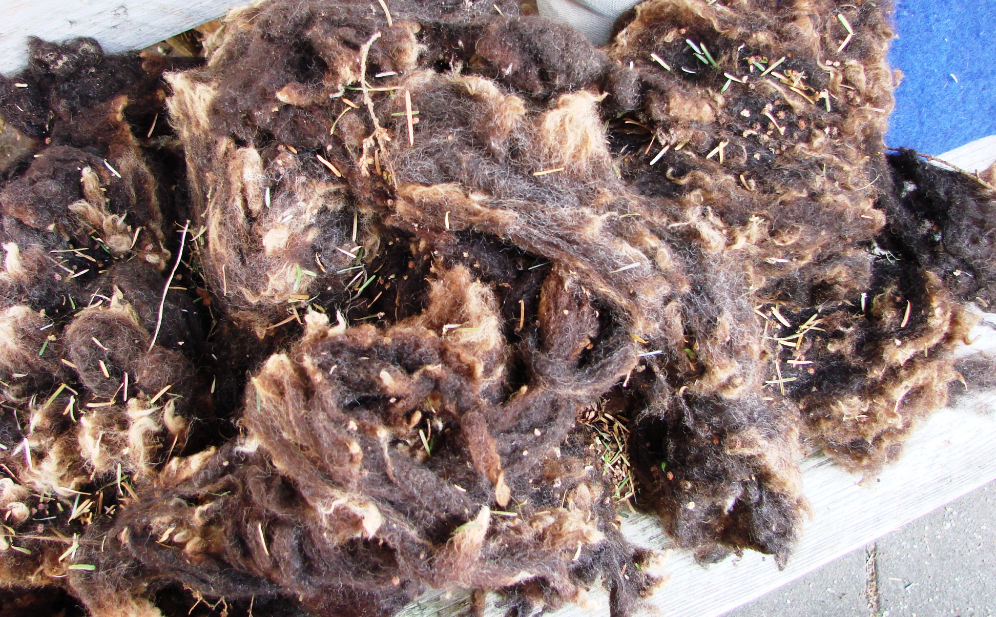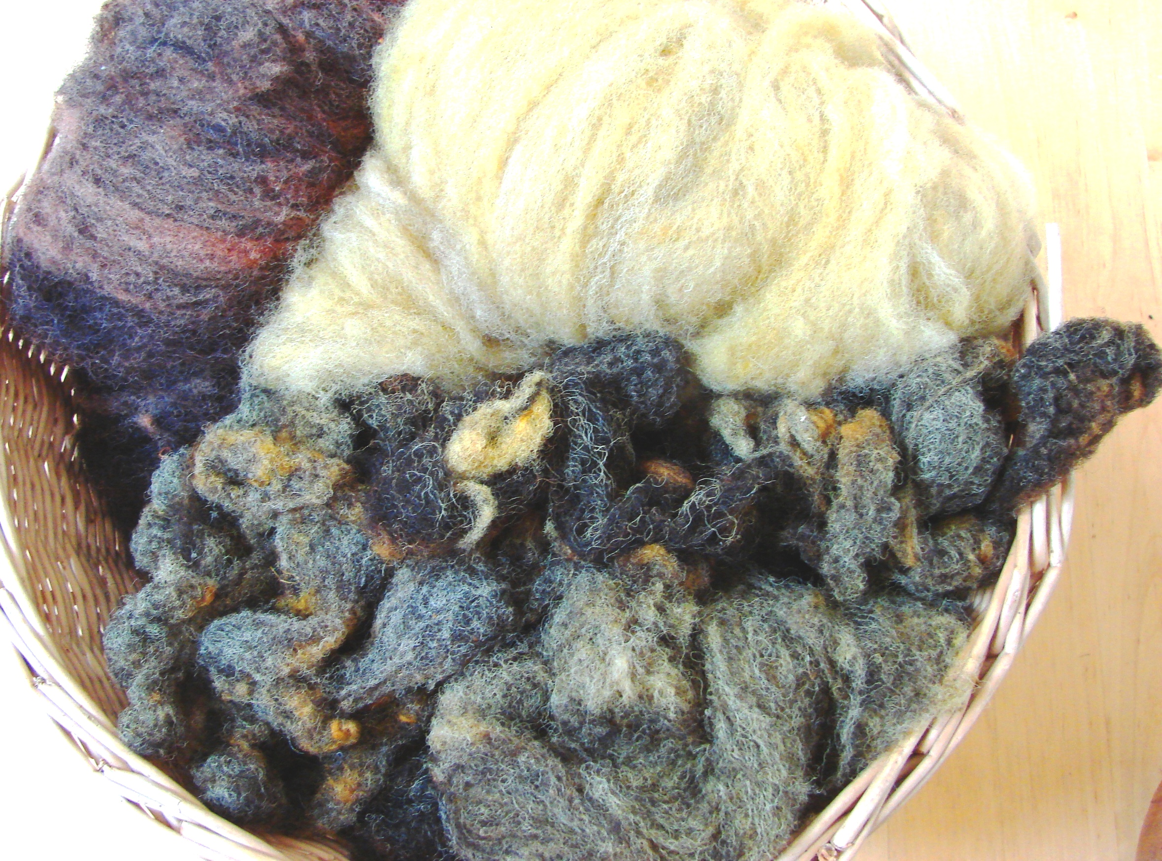 Lange lokken en gezonde dikke wol uitzoeken. Met die mix spin je een grappige onregelmatige draad.