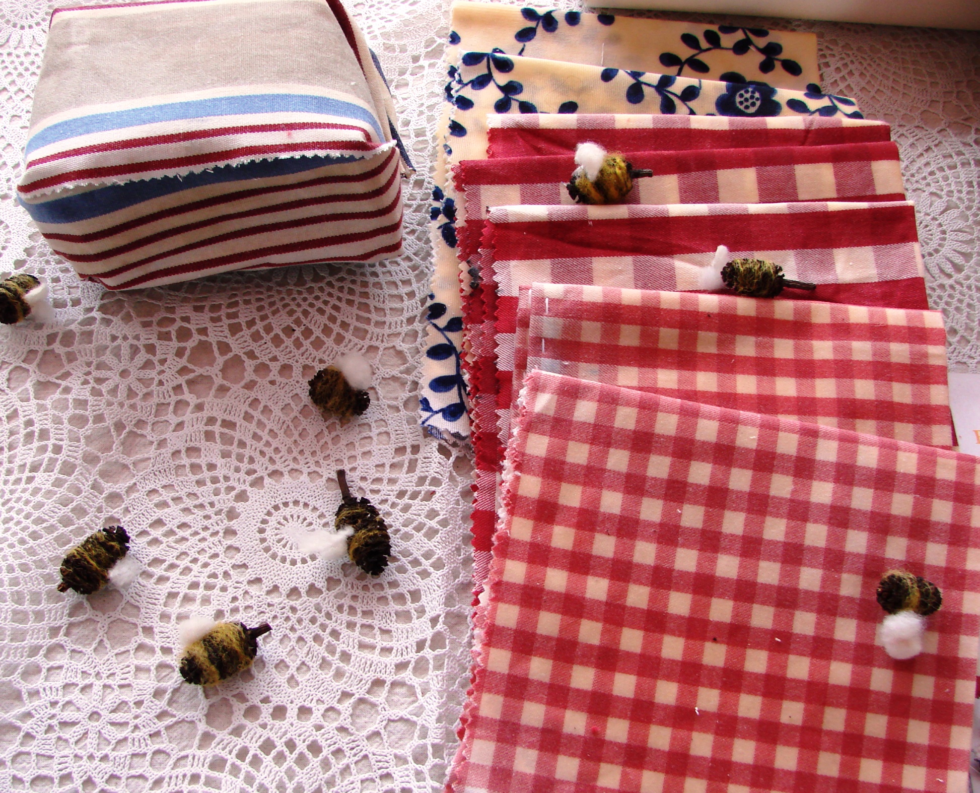 Als je prijs stelt op een blogverhaal met stap-voor-stap handleiding en plaatjes, kijk dan op http://myhealthygreenfamily.com/blog/wordpress/plastic-wrap-alternative-diy-beeswax-cotton-wraps/. Ik volsta met een korte beschrijving van het waarom en hoe en laat je een paar foto’s zien.